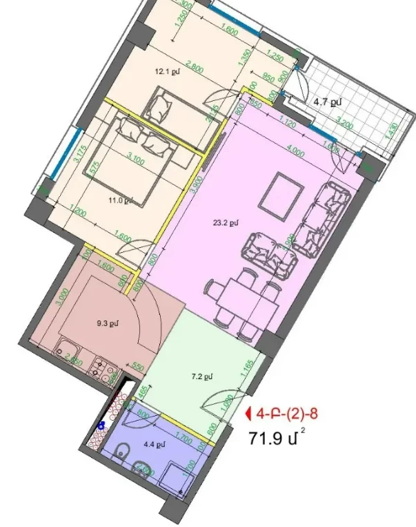 It is provided with constant water and gas. There is a large basement under the apartment.