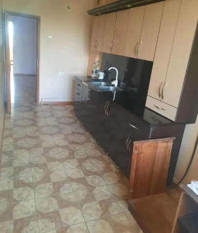 The interior partitions of the apartment are done, the walls are plastered, the floor is leveled, the entrance iron door and windows are installed.