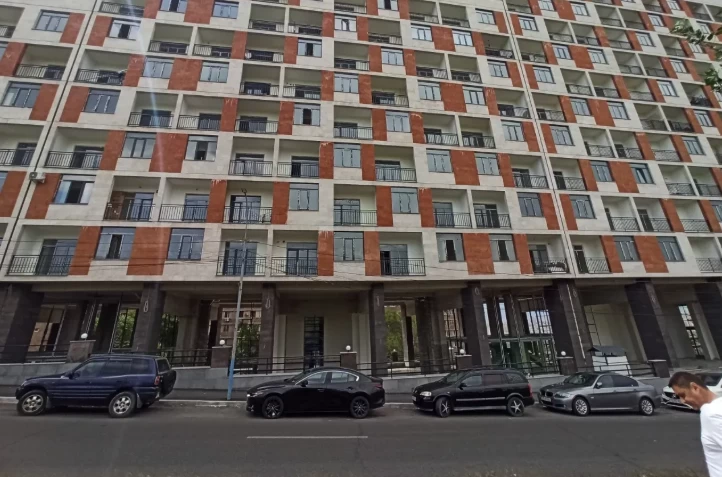 На дворе игровая площадка, автомобильная парковка. Баки p>