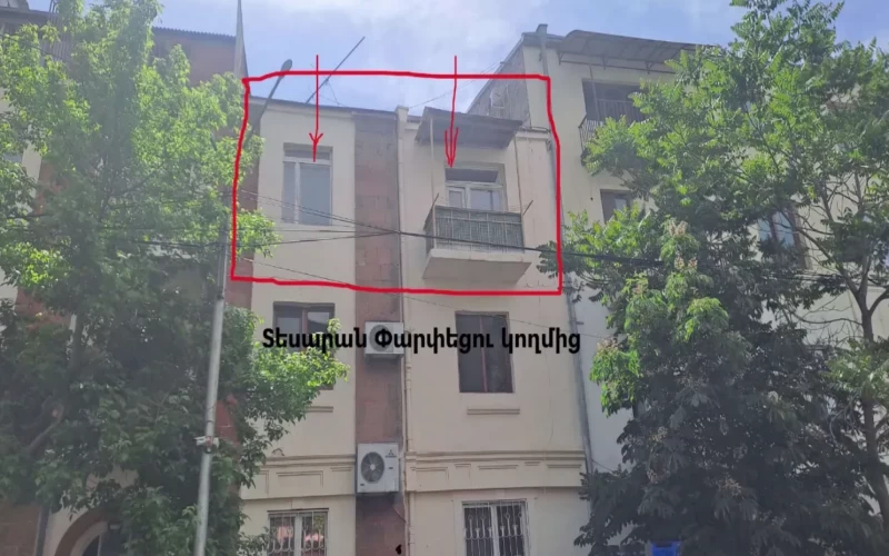 (տեխնոպլեկս + գիպսակարդոն), երկաթե դուռ: Բնակարանը արևկող է։Բակում 3 կողմից դրված է շլակբաում: