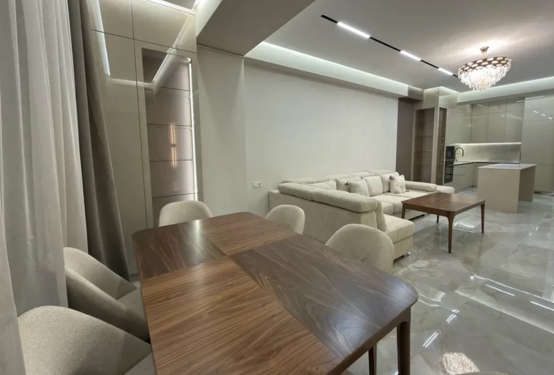В квартире просторная веранда, отдельная кухня, постирочная, две ванные комнаты, две спальни (одна из которых имеет свою открытую гардеробную и собственную ванную комнату), просторную столовую.