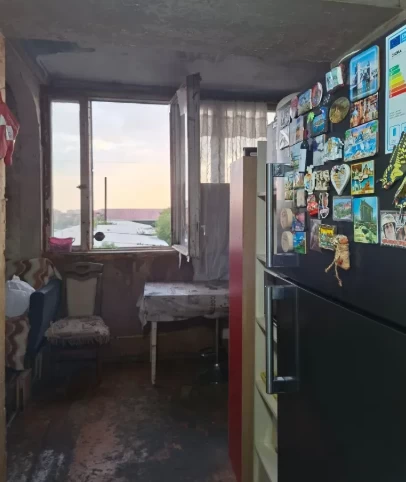 Микроволновая печь, стол и стулья, встроенные шкафы,