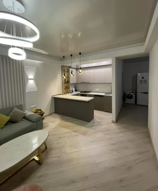 С новым ремонтом, два чула, один в конце дома, другой у входа, есть подвал, крыша скатная, на крыше бак с питьевой водой емкостью 500 литров, установлено отопление, гараж продается отдельно, цена бетона на две машины 15 000$