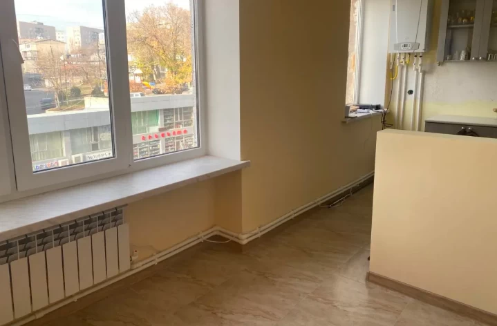 Оборудован системой отопления. Железная входная дверь, евроокна, санузел кафель. На 3 этаже каменного дома, площадью 80 кв.м. Есть открытый балкон.