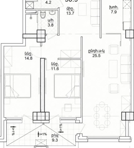 3 rooms in the center of Artashat, 5th floor, zero condition, roof repaired. Not gasified. There is electricity. Near Artashat Plaza. Very good view of Mount Ararat.